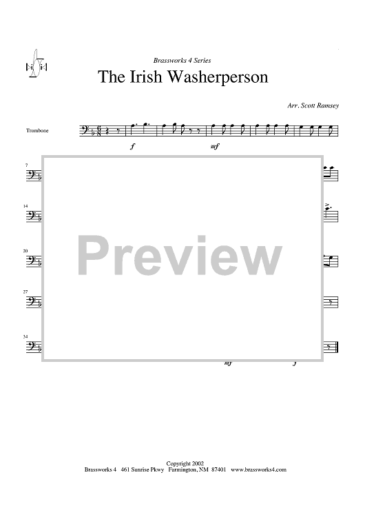 Digital Sheet Music for The Irish Washerperson - Trombone by Scott A. Ramsey scored for Brass Quartet; id:318838