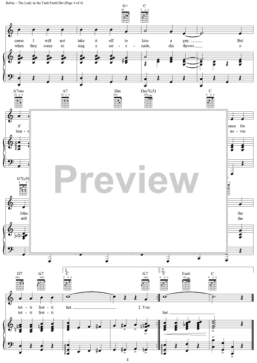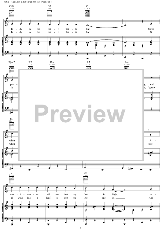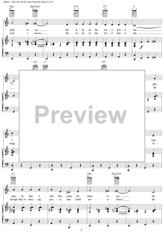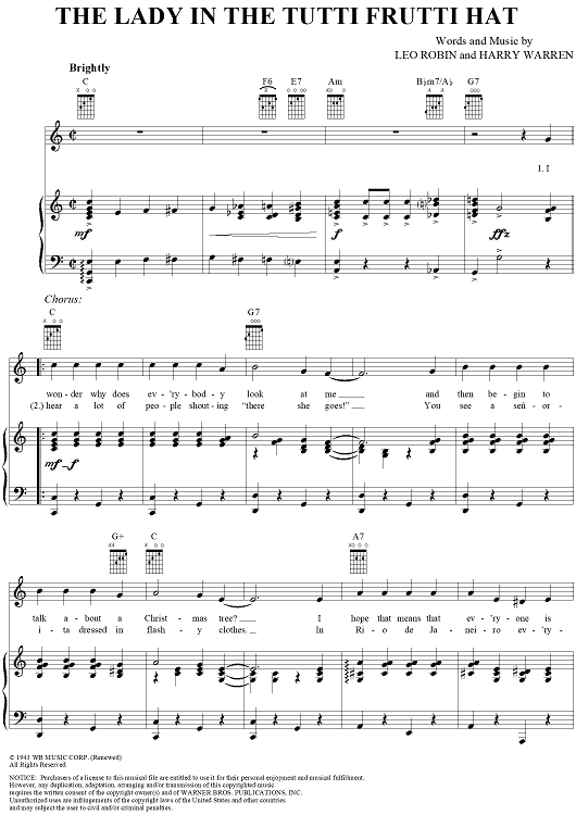 Digital Sheet Music for The Lady in the Tutti Frutti Hat by Harry Warren, Leo Robin scored for Piano/Vocal/Chords; id:305426