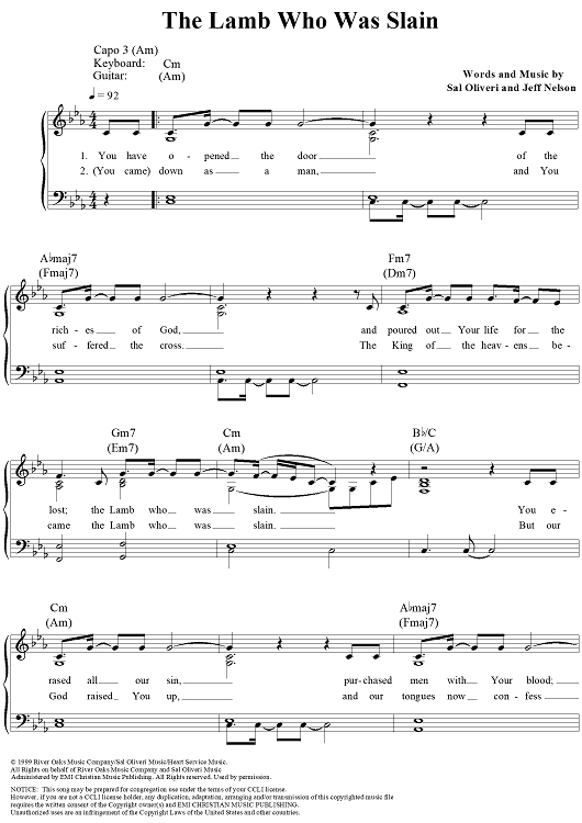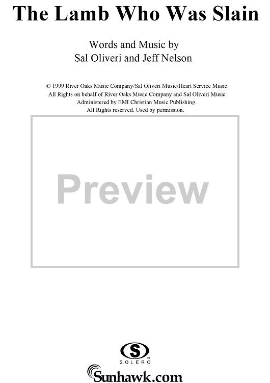 Digital Sheet Music for The Lamb Who Was Slain by Jeff Nelson, Sal Oliveri scored for Piano/Vocal/Chords; id:113705