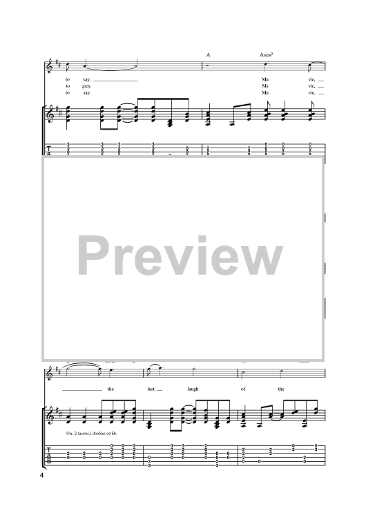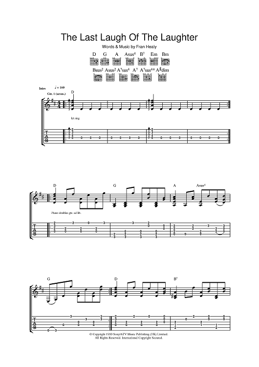 Digital Sheet Music for The Last Laugh Of The Laughter by Fran Healy, Travis scored for Guitar Tab; id:393877