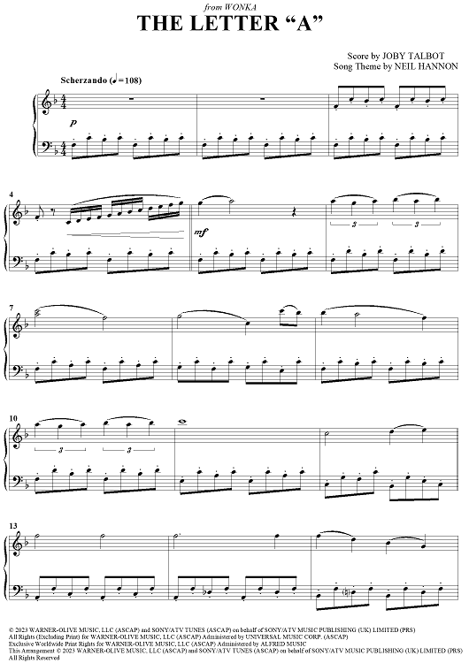 Digital Sheet Music for The Letter "A" - from Wonka by Neil Hannon, Joby Talbot scored for Piano Solo; id:501506