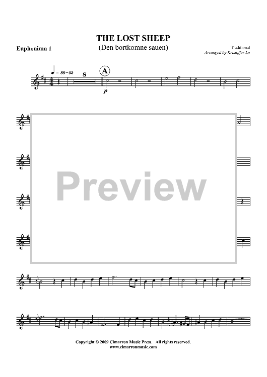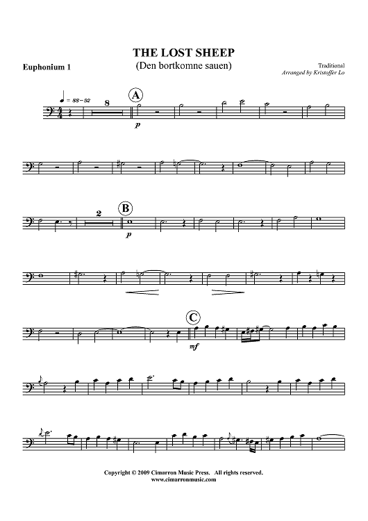 "The Lost Sheep (Deb bortkomne sauen) - Euphonium 1 BC/TC" Sheet Music by Traditional