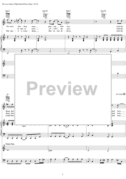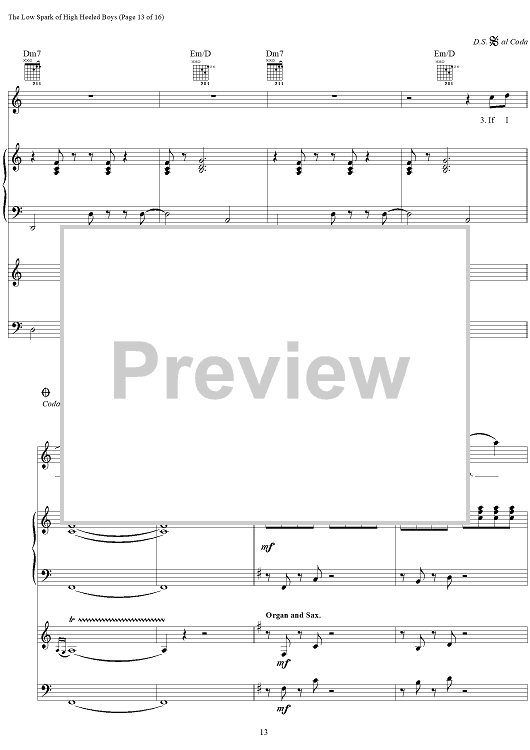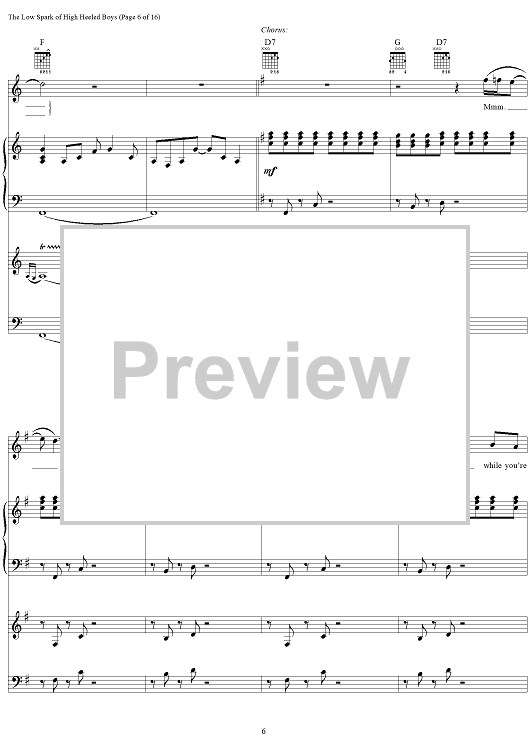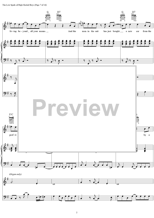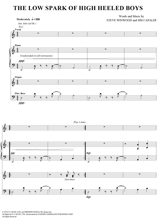 Digital Sheet Music for The Low Spark of High Heel Boys by Steve Winwood, Jim Capaldi scored for Vocal/Piano/Organ/Bass/Chords; id:286936