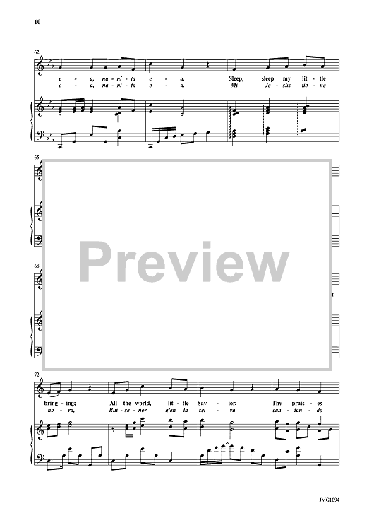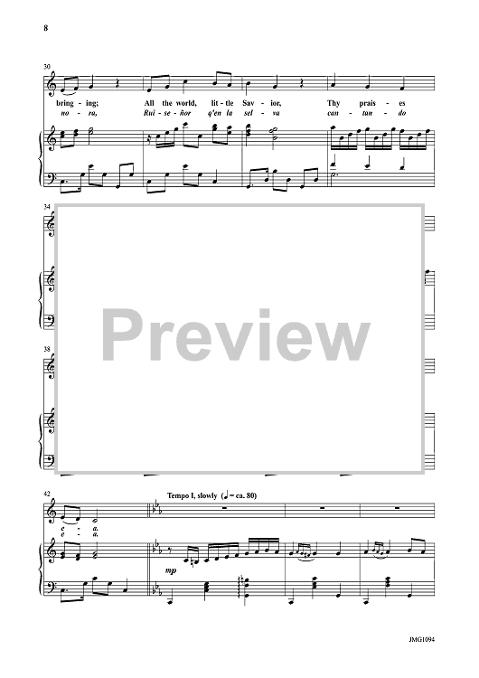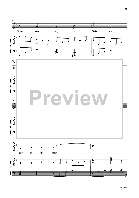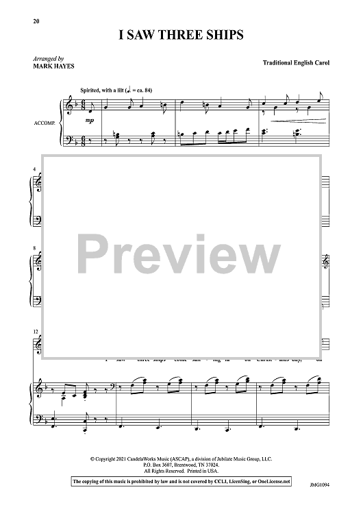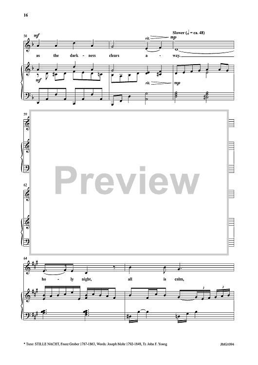 Songs include: A La Nanita Nana, Let All Mortal Flesh Keep Silence, I Saw Three Ships, O Come, O Come Emmanuel, Once In Royal David's City, Go Tell It On the Mountain, In the Bleak Midwinter, Sussex Carol, The Wexford Carol, and The Huron Carol. The recorded products feature Mark Hayes himself at the keyboard.