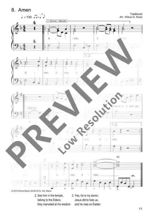 In addition to the very successful series of Hans and Marianne Magolt, they now publish the first volume in the new series 'The Most Beautiful Spirituals & Gospels'. All melodies are very easy arrangements for beginners and can be played at various occasions at home, at the music school or at primary school. Contents: Down by the Riverside, Glory Hallelujah, Go down Moses, O happy day, Rock my soul, He’s got the whole world in his hands, Nobody knows the trouble I’ve seen, Swing low and many more.
