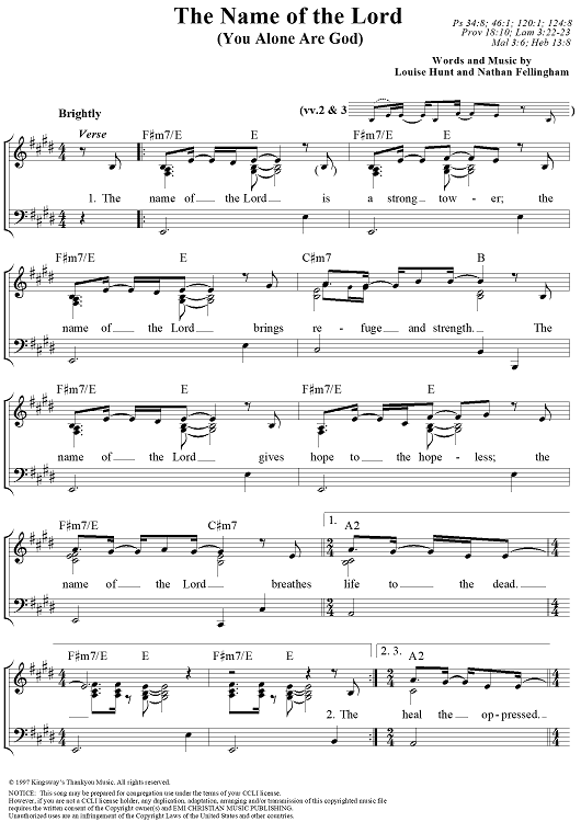 Digital Sheet Music for The Name of the Lord (You Alone Are God) by Nathan Fellingham, Louise Hunt scored for Piano/Vocal/Chords; id:110045