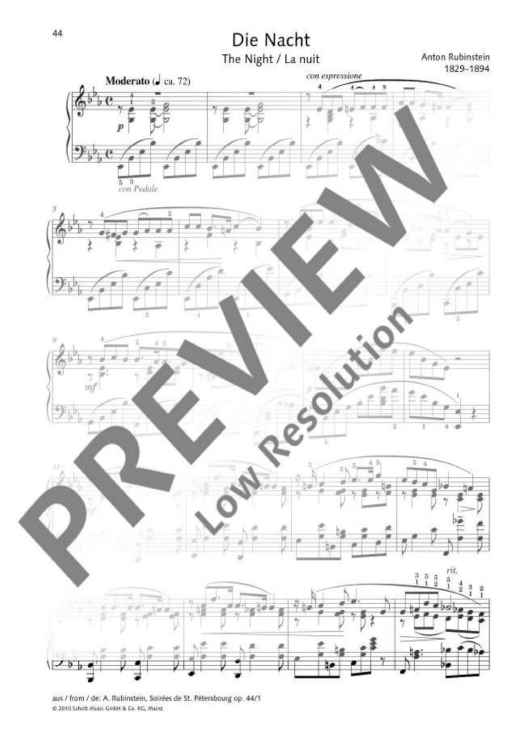 Digital Sheet Music for The Night by Grigorjewitsch Rubinstejn scored for Piano; id:481108