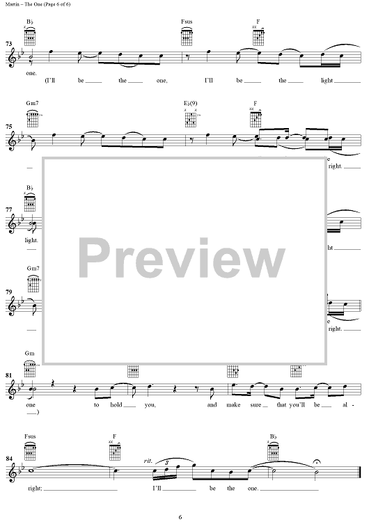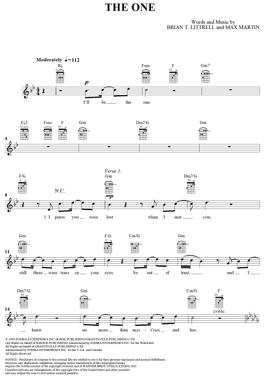 Digital Sheet Music for The One by Max Martin, Backstreet Boys, Brian Littrell scored for Easy Guitar/Vocal; id:285746