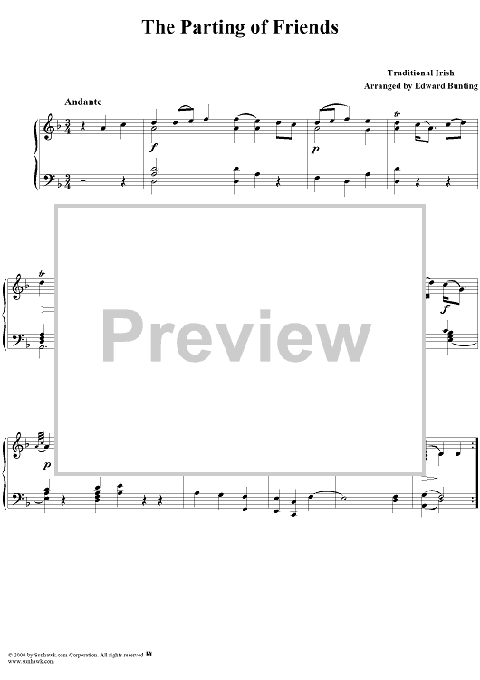 Digital Sheet Music for The Parting of Friends by , Edward Bunting, Traditional scored for Piano Solo; id:166067