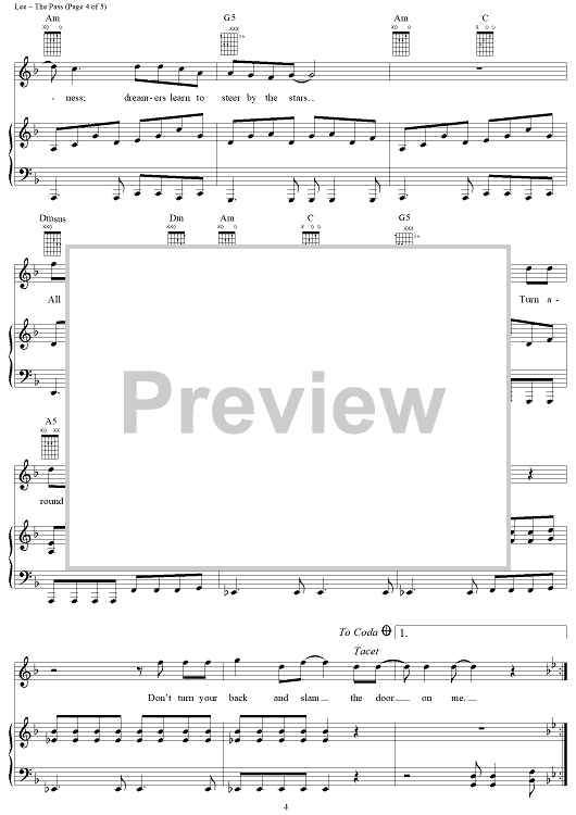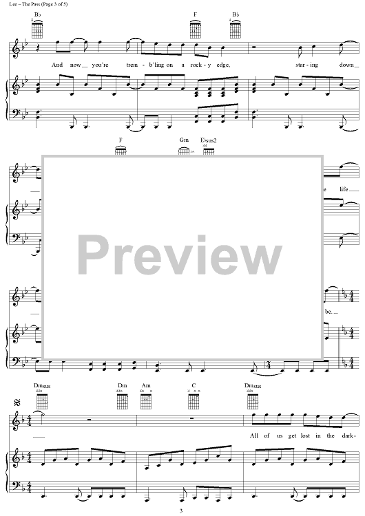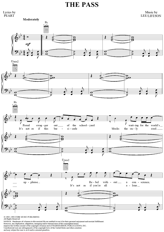 Digital Sheet Music for The Pass by Rush, Geddy Lee, Alex Lifeson, Neil Peart scored for Piano/Vocal/Chords; id:124276
