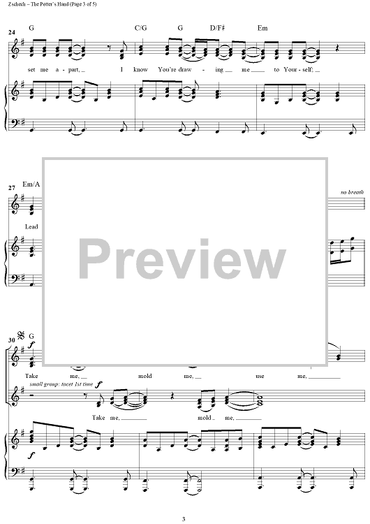 Digital Sheet Music for The Potter's Hand by Darlene Zschech scored for Piano/Vocal/Chords; id:307730
