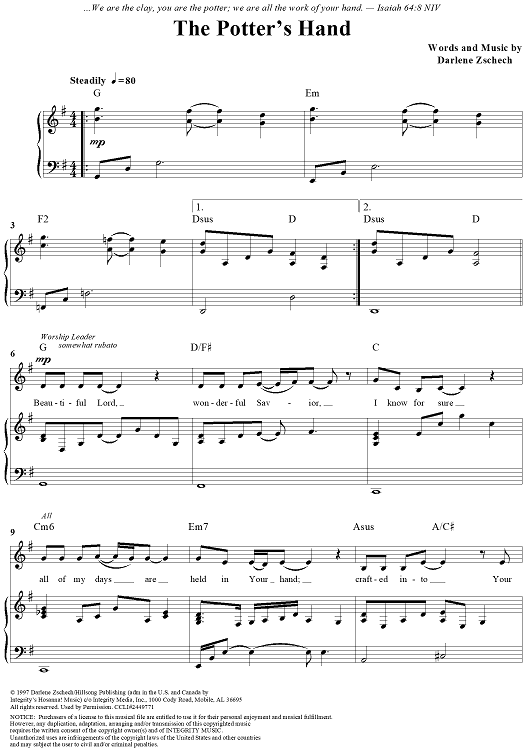 "The Potter's Hand" Sheet Music by Darlene Zschech