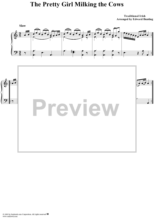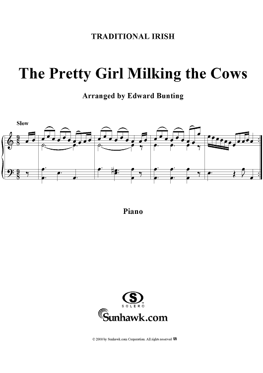Digital Sheet Music for The Pretty Girl Milking the Cows by , Edward Bunting, Traditional scored for Piano Solo; id:203708