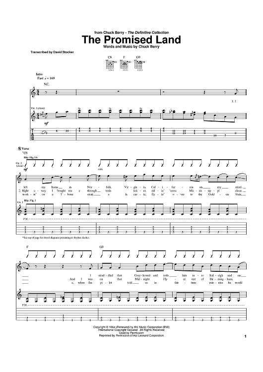 Digital Sheet Music for The Promised Land by Chuck Berry scored for Guitar Tab; id:398376