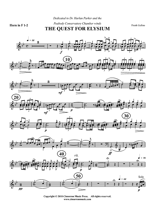 "The Quest For Elysium - Horn 1/Horn 2" Sheet Music by Frank Gulino