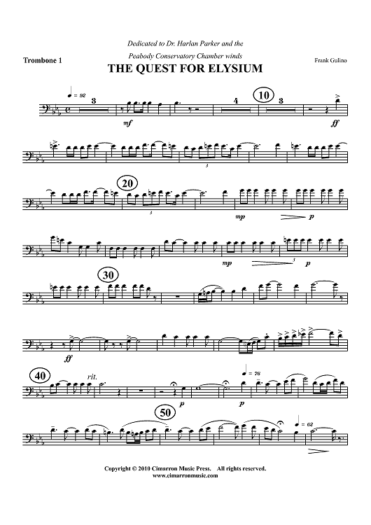 "The Quest For Elysium - Trombone 1" Sheet Music by Frank Gulino