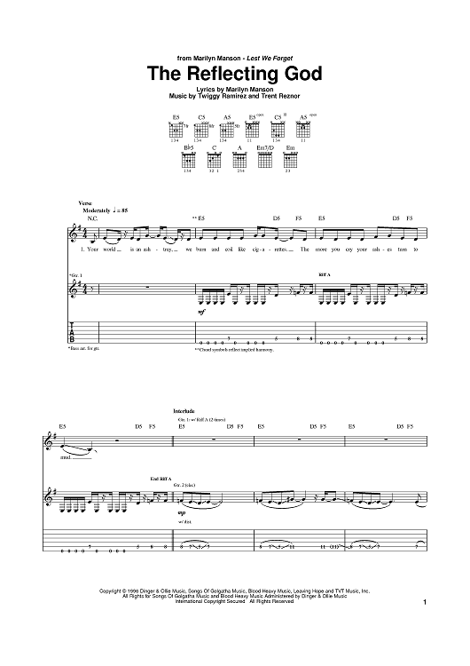Digital Sheet Music for The Reflecting God by Trent Reznor, Marilyn Manson, Twiggy Ramirez scored for Guitar Tab; id:384629