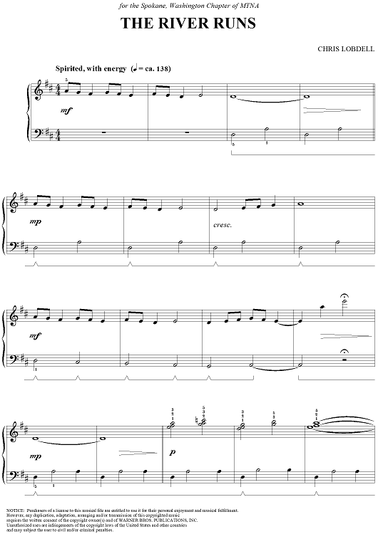 Digital Sheet Music for The River Runs by Chris Lobdell scored for Easy Piano; id:250815