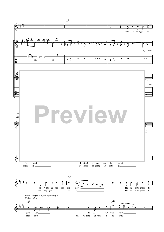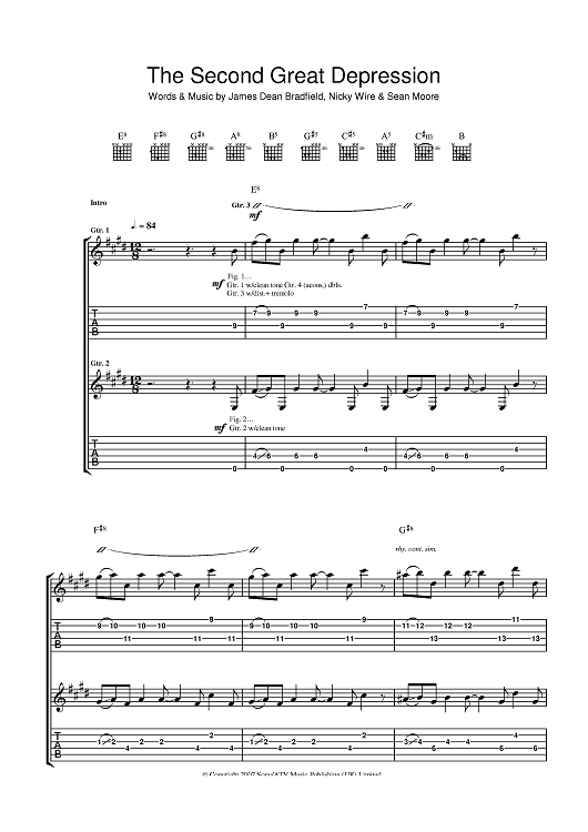 Digital Sheet Music for The Second Great Depression by James Dean Bradfield, The Manic Street Preachers, Sean Moore, Nicky Wire scored for Guitar Tab; id:401628