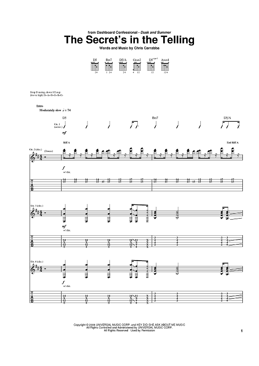 Digital Sheet Music for The Secret's In The Telling by Chris Carrabba, Dashboard Confessional scored for Guitar Tab; id:397595