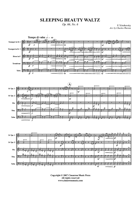 Digital Sheet Music for The Sleeping Beauty. Act I, No. 6. Valse (Theme) - Score by Charles Warren, Peter Ilyich Tchaikovsky scored for Brass Quintet; id:361075