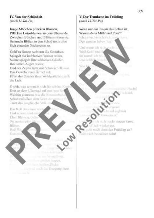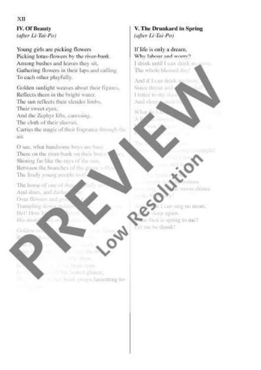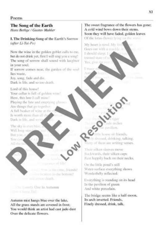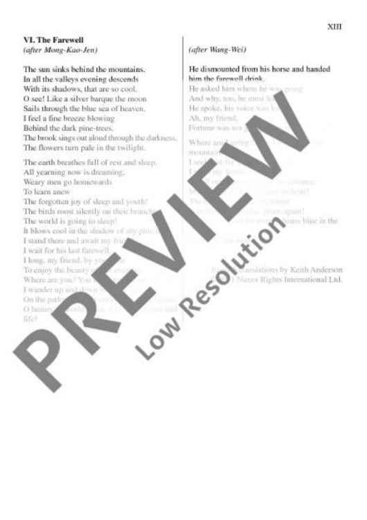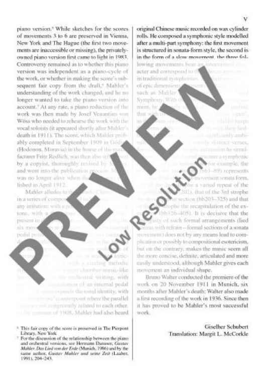 "The Song of the Earth - Full Score" Sheet Music by Gustav Mahler