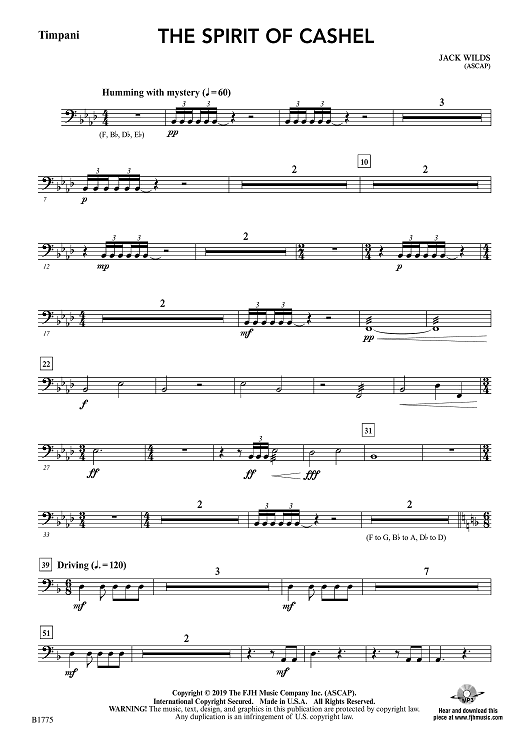 "The Spirit of Cashel - Timpani" Sheet Music by Jack Wilds