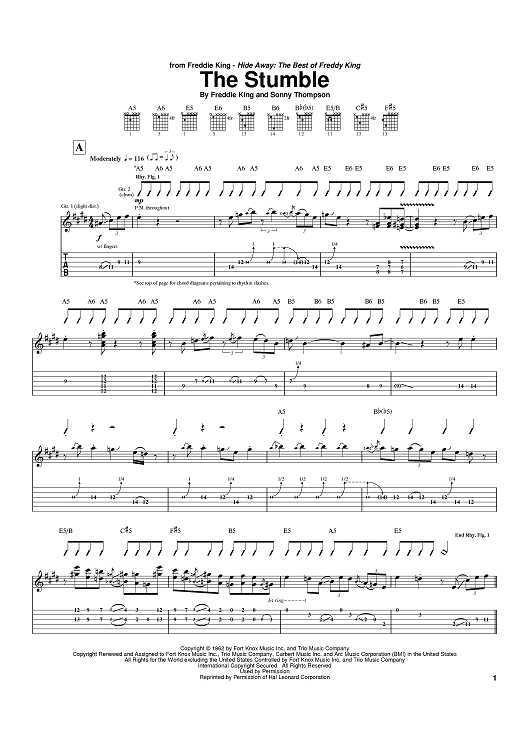 Digital Sheet Music for The Stumble by Freddie King, Sonny Thompson scored for Guitar Tab; id:394817