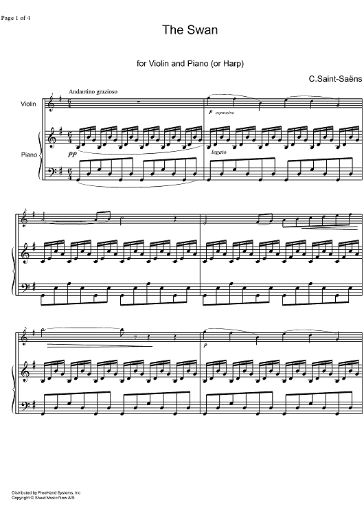 Digital Sheet Music for The Swan - Score by Camille Saint-Saëns, SMN Archive Collection scored for Violin/Piano; id:325458
