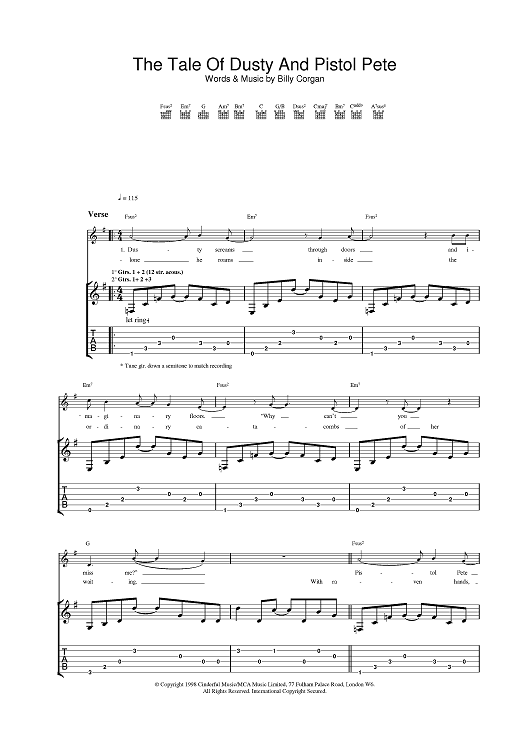 Digital Sheet Music for The Tale Of Dusty And Pistol Pete by Smashing Pumpkins scored for Guitar Tab; id:376755