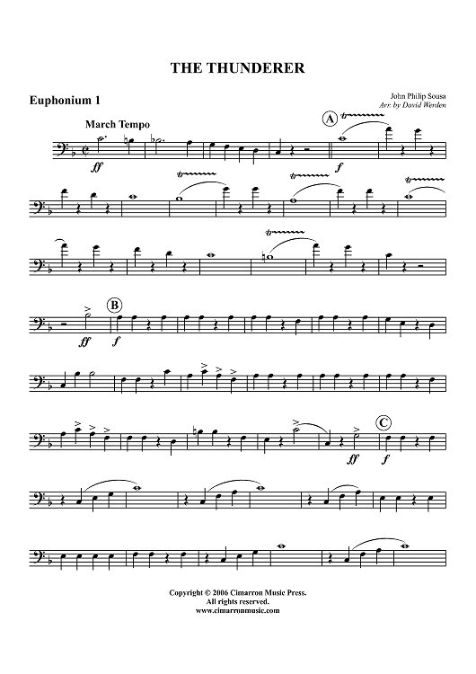 "The Thunderer - Euphonium 1 BC/TC" Sheet Music by John Philip Sousa