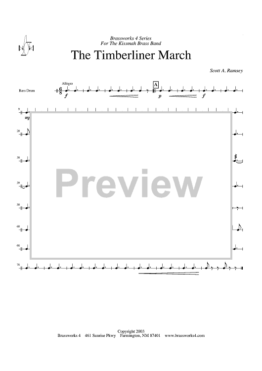 Digital Sheet Music for The Timberliner March - Bass Drum by Scott A. Ramsey scored for Brass Ensemble; id:428201