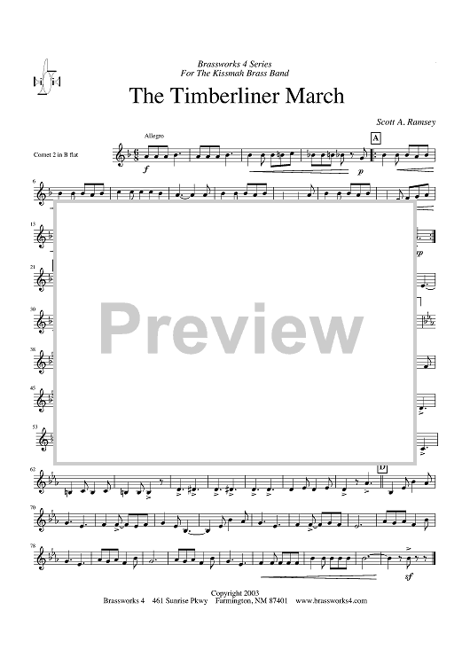 "The Timberliner March - Cornet 2 in Bb" Sheet Music by Scott A. Ramsey