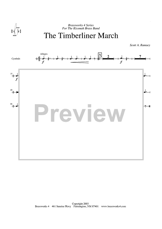 Digital Sheet Music for The Timberliner March - Cymbals by Scott A. Ramsey scored for Brass Ensemble; id:428202