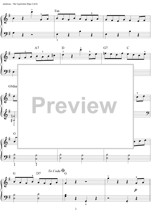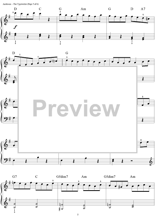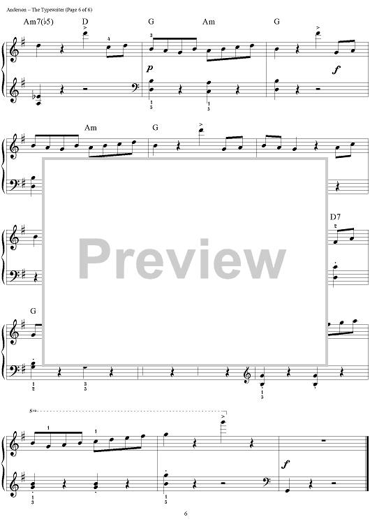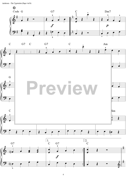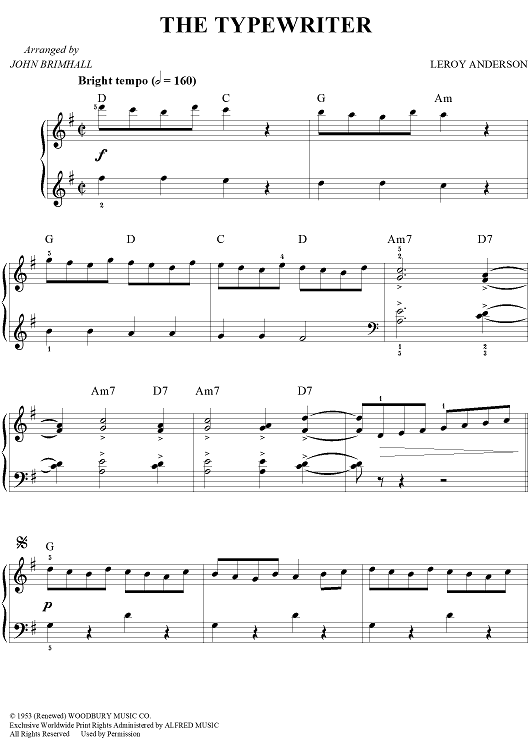 Digital Sheet Music for The Typewriter by Leroy Anderson, John Brimhall scored for Easy Piano; id:277014