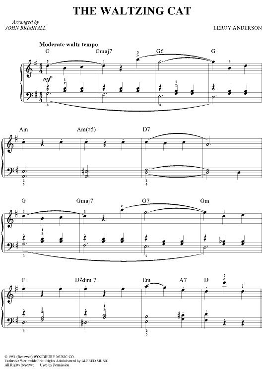 Digital Sheet Music for The Waltzing Cat by Leroy Anderson, John Brimhall scored for Easy Piano; id:277051