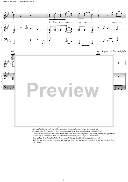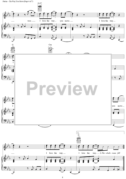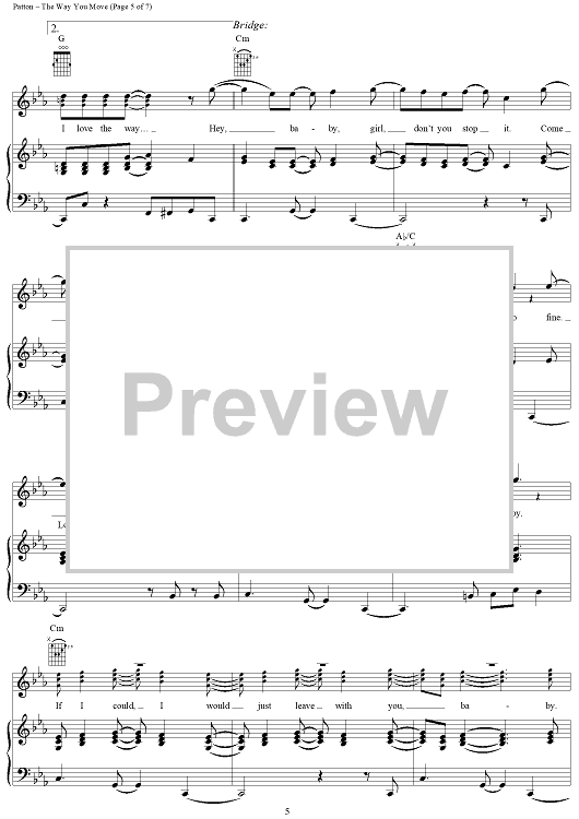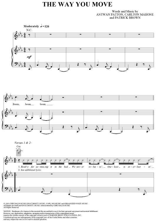 Digital Sheet Music for The Way You Move by Big Boi, OutKast, Carlton Mahone, Patrick Brown scored for Piano/Vocal/Chords; id:305260