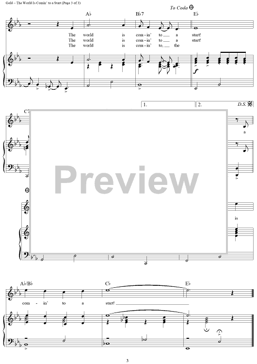"The World Is Comin' to a Start" Sheet Music by Gary Geld