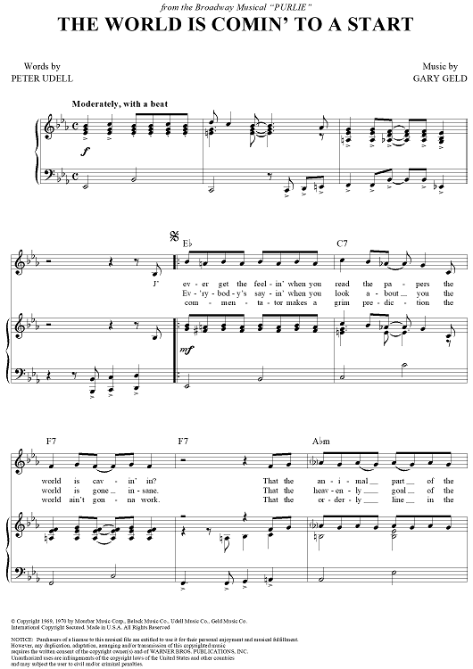 Digital Sheet Music for The World Is Comin' to a Start by Gary Geld, Peter Udell scored for Piano/Vocal/Chords; id:321679