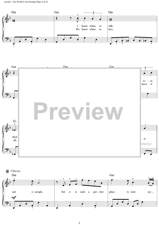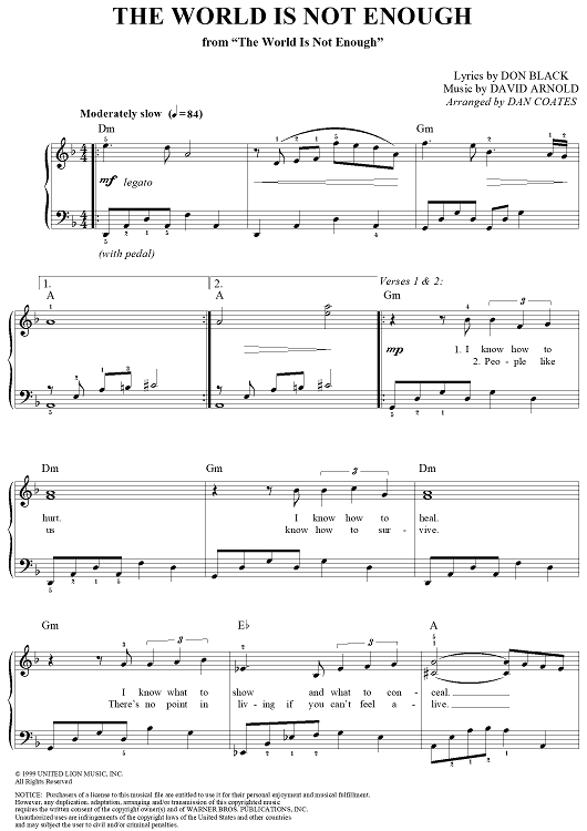 Digital Sheet Music for The World Is Not Enough by Dan Coates, Don Black, David Arnold scored for Easy Piano/Vocal; id:283733