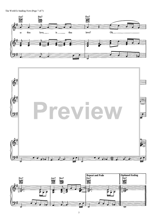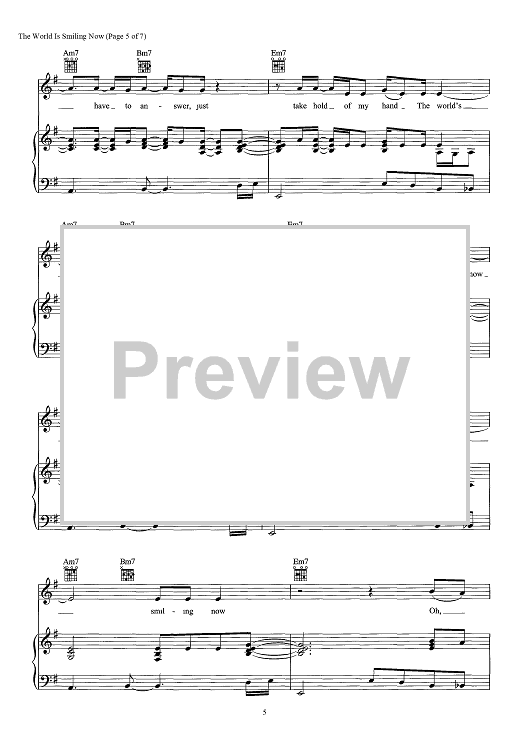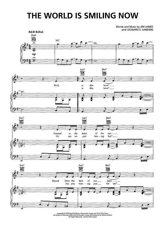 Digital Sheet Music for The World Is Smiling Now - from "This Is Us" by Jim James, Leonard E Sanders scored for Piano/Vocal/Chords; id:466728