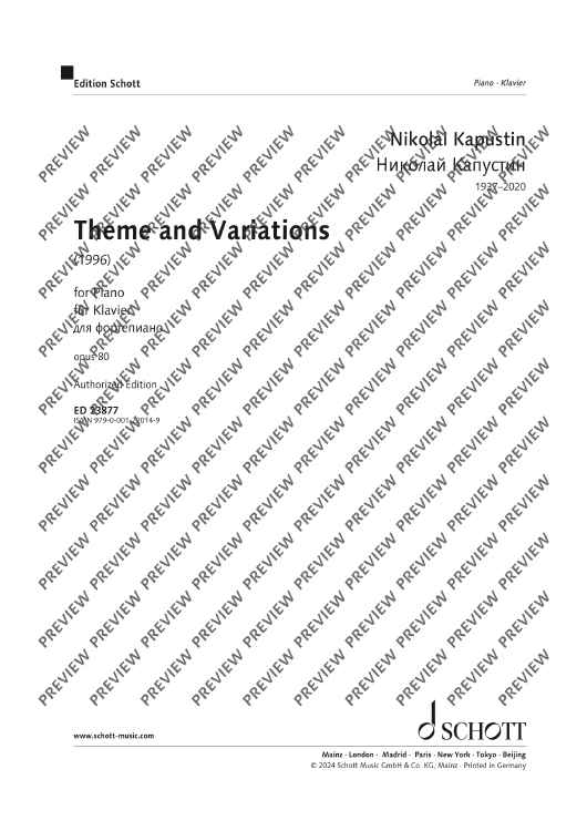 "Theme and Variations" Sheet Music by Nikolai Kapustin