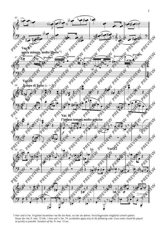 Das Werk ist dem Pianisten Matthias Rein zum 50. Geburtstag gewidmet. Der Variationszyklus soll wie das lockere Durchblättern eines Fotoalbums wirken. Die Variationen sollen deshalb in rascher Folge und ohne Unterbrechung gespielt werden.