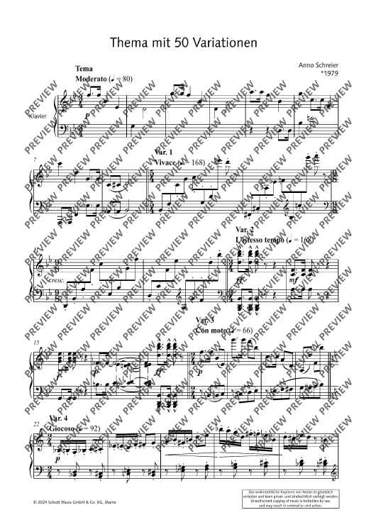 "Theme with 50 Variations" Sheet Music by Anno Schreier