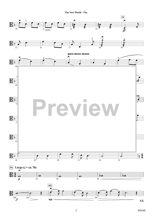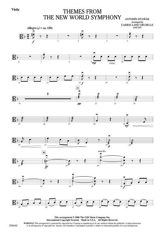 "Themes from the New World Symphony - Viola" Sheet Music by Antonín Dvorák