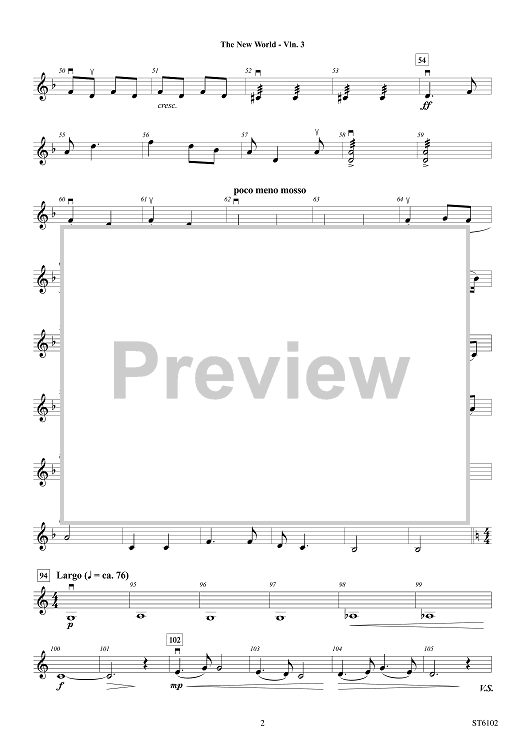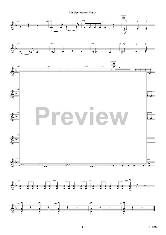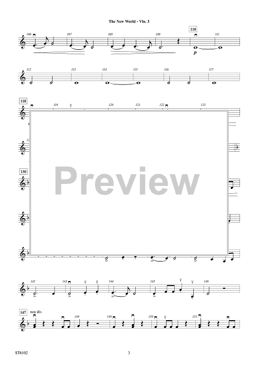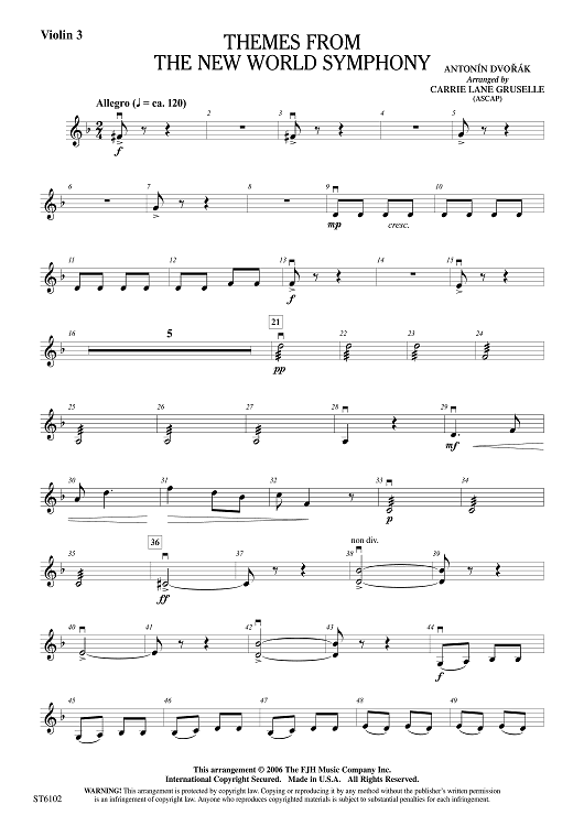 "Themes from the New World Symphony - Violin 3" Sheet Music by Antonín Dvorák