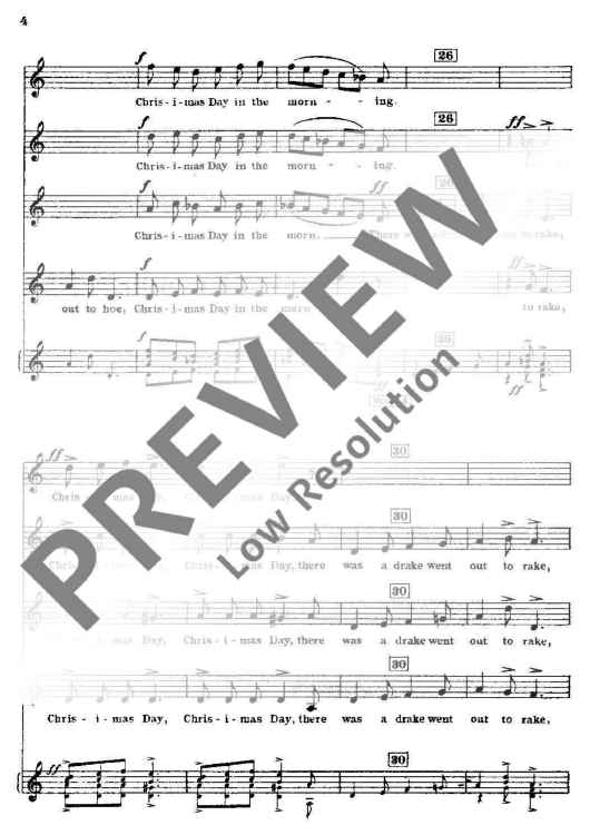 An English playing song collected in Lancashire and published in Miss M. H. Mason's "Nursery Rhymes and Country Songs", freely set for 4-part women's, or children's or both's, chorus or for four single voices by Percy Aldridge Grainger.