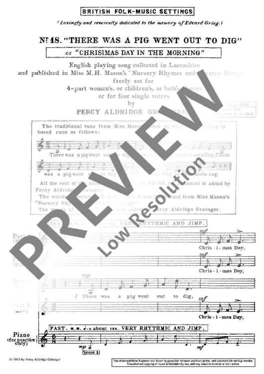 "There was a pig went out to dig - Choral Score" Sheet Music by George Percy Aldridge Grainger