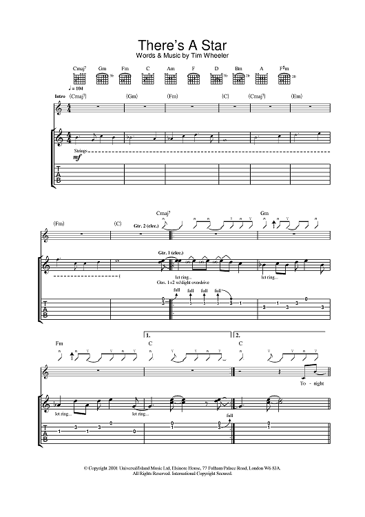 Digital Sheet Music for There's A Star by Ash scored for Guitar Tab; id:377800
