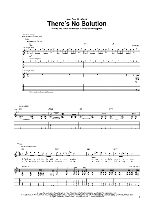 Digital Sheet Music for There's No Solution by Greig Andrew Nori, Sum 41, Deryck Whibley scored for Guitar Tab; id:383327